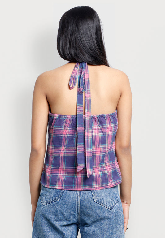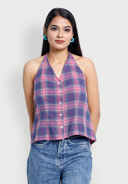 Pink & Blue Plaid Gauze Top