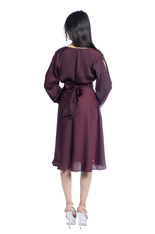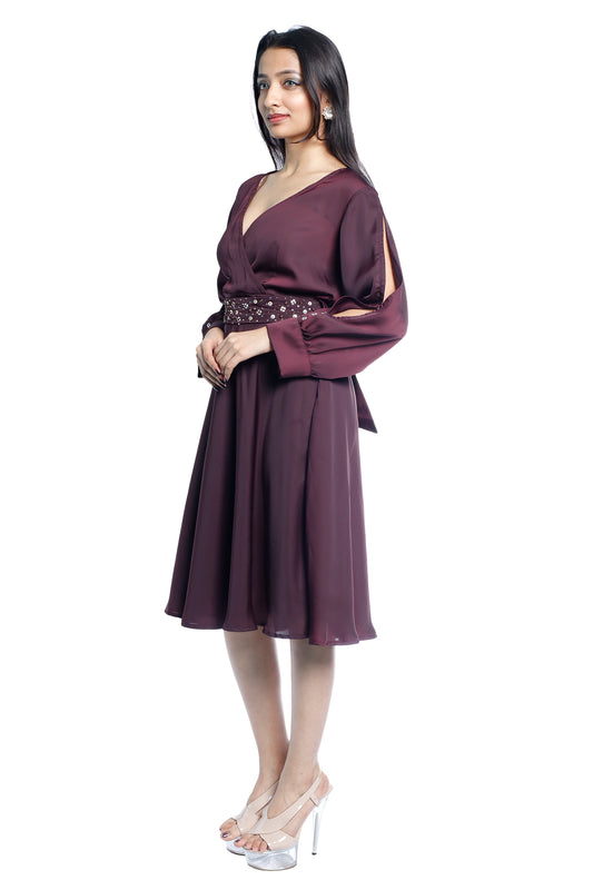 Wine V‑neck Wrap Dress with Embellished Belt